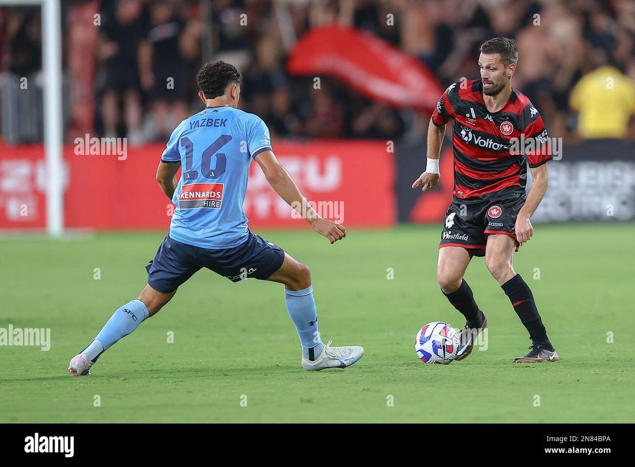 Sydney Australia 11th Feb 2023 11th February 2023 Commbank Stadium Sydney Nsw Australia A League Football Western Sydney Wanderers Versus Sydney Fc Morgan Schneiderlin Of Western Sydney Wanderers Takes On Patrick Yazbek Of